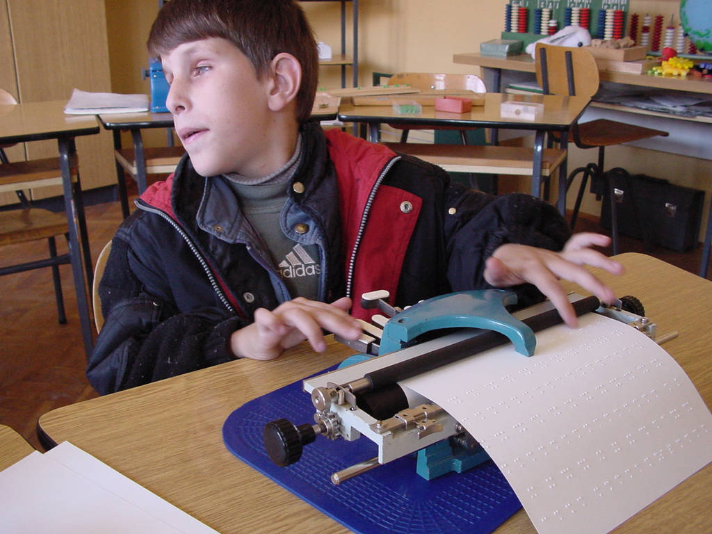 «Auf der Strasse sind sehr wenige Blinde zu sehen», sagt Lisa Müller. Dabei kann die 22-jährige Frau aus der Schweiz selbst nichts sehen. «Im Kosovo können sich Blinde nicht alleine bewegen, weil sich die Umgebung dauernd verändert, die Strassen werden aufgerissen und neue Häuser gebaut.» In den Räumlichkeiten der Blindenschule von Pec braucht Lisa keine Hilfe mehr. Seit drei Monaten arbeitet sie mit den Kindern am tragbaren Computer, den sie mitgebracht hat. Ein besonderer Computer: Jede Eingabe quittiert dieser mit Worten und vor der Tastatur können die Finger fühlen, was für die Augen unsichtbar auf dem Bildschirm steht. «Ich bin in der Schweiz privilegiert. Hier erhalten Blinde nur wenig Hilfe. Was ich gelernt habe, möchte ich weitergeben», begründet Lisa ihre Motivation, für einige Monate in der Blindenschule von Pec zu arbeiten.