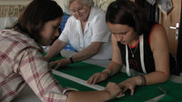 34 Jahren zu diplomierten Damenschneiderinnen aus. Liridona schneidet mit der