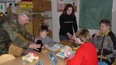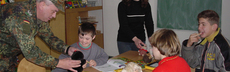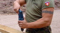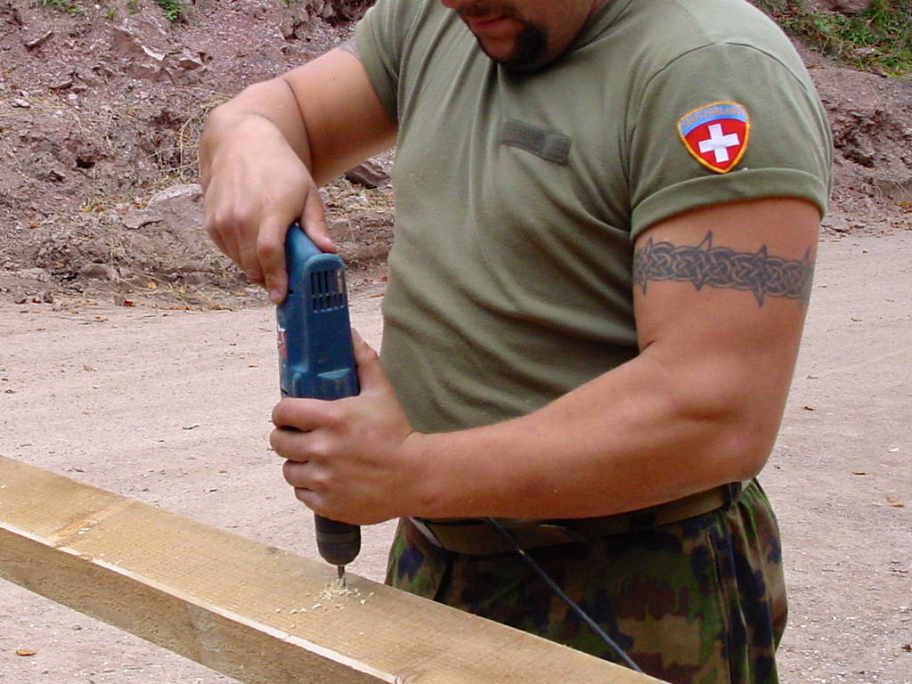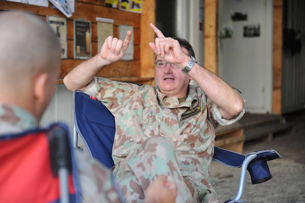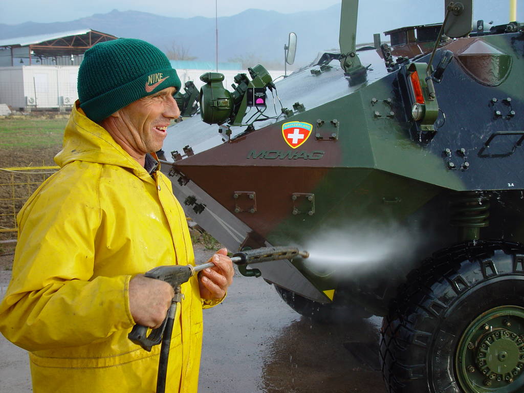 in Militäruniform. Angestellt von der Swisscoy. Arbeit für die Bundeswehr.