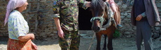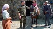 Samile wohnt in einem kleinen Bergdorf nahe der albanischen Grenze. Der Boden gibt das Nötigste her. «Hier wachsen Tomaten, Kürbisse, Gurken, Mais und Weizen», sagt Samile. Einige Felder sind fachmännisch bestellt. Andere sind von Pflanzen überwuchert. «Da liegen Minen», weiss das Mädchen. Das Gebiet war hart umkämpft, die UÇK verschanzte sich in der bergigen Gegend, die Serben setzten die Häuser der Albaner in Brand. Auch jenes von Samile. Vor dem Krieg wohnten 1000 Menschen mehr im Dorf. Verdienstmöglichkeiten haben heute auch die Verbleibenden keine. Samiles Vater sucht in Kroatien nach Arbeit.