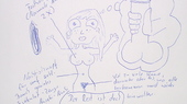 drückt kraftvoll und fühlt danach den Buchstaben, den er geschrieben hat – A.