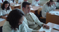Bernadette Schmid schaut mit kritischen Blicken zu. Die Lehrerin aus der