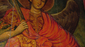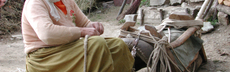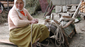 näht mit einer dicken Nadel an einem uralten Ledersattel. Sie weiss nicht so