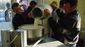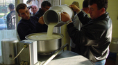 stellen ihre Kannen auf den Boden. 1000 Liter Milch werden von Klina im Osten