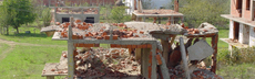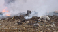eingeschossene Autos verrosten, Waschmaschinen stehen im Regen, Essensreste