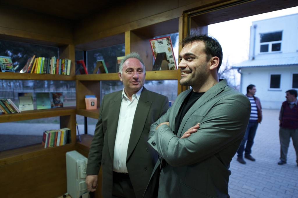 installiert er im Kosovo Bibliotheken auf Schulhöfen.