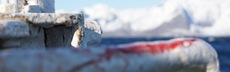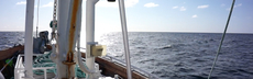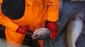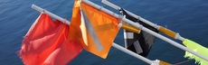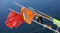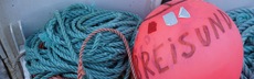 Petter wirft die erste Markierungsboje ins Wasser. Zwei Seile verschwinden im
