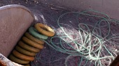 hängen in einigen Metern Abstand Kunststoffringe, die für Auftrieb sorgen.