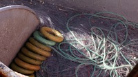 Fäden verfangen. Morgen wird er mit seinem Sohn die Netze wieder einholen. Wie