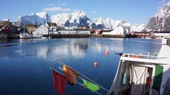 Gesicht. Er steuert in Richtung der imposanten Felskulisse der Lofoten. Hier gehört