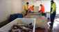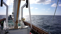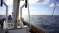 die vom Dieselmotor angetriebene Winde zieht das Netz wieder an Bord. Viel