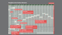 Es gewinnt der Fahrer mit der geringsten Punktezahl, addiert aus Streckenstrafpunkten und Sonderprüfungszeiten. Wer das ist, wird meist erst im Laufe des Montags bekannt, wenn die meisten Enduro-Amateure nach einer langen Heimreise und einer kurzen Nacht im Bett wieder an ihrem Arbeitsplatz sind.