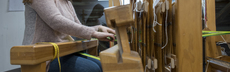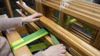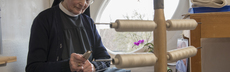 Die Herstellung eines Gewandes in der Weberei erfolgt über mehrere Tage. Die Weberinnen unterbrechen immer wieder ihre Arbeit, da auch Spulen hergestellt werden müssen. Zudem ist das Weben am grossen Webstuhl sehr streng, da macht es Sinn, andere Arbeiten parallel auszuführen.