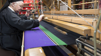 Der Webstuhl wird für mehrere Gewänder eingerichtet. Ein Messgewand hat 3600 Fäden in Schappeseide in der Kette (Längsrichtung), im Schuss (quer) sind es 3325 Fäden in Haspelseide plus 3325 Fäden in Wolle/Mohair, abwechselnd eingetragen - dies gibt dem Stoff den wunderbaren Fall und eine hervorragende Qualität. Das Einrichten des grossen Webstuhles für 20 Gewänder dauert rund eine Arbeitswoche. Das Einrichten des kleinen Webstuhls für drei bis fünf Stolen dauert fünf Stunden.