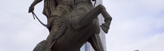 Skanderbeg, ein albanischer Fürstensohn und Geisel des osmanischen Sultans, tritt an seinem Hof zum Islam über, steigt zum Heerführer auf. Doch er wendet sich vom Sultan ab, konvertiert vom Islam zum Katholizismus und vereinigt verschiedene albanische und slawische Fürstenhäuser. Angriffe des osmanischen Reiches wehrt er bis zum seinem Tode 1486 erfolgreich ab (im Bild seine Statue in Pristina). Fortan gilt er in der westlichen Welt als Verteidiger des Abendlandes.